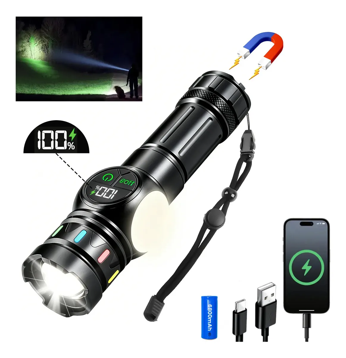 Lámpara táctica LED recargable de aluminio, 120000 lúmenes, linterna de mano potente con 9 modos de iluminación
